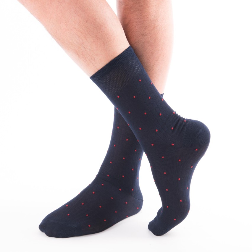 Calze uomo corte Enrico Coveri deluxe 60 cotone blu rettangolini rossi