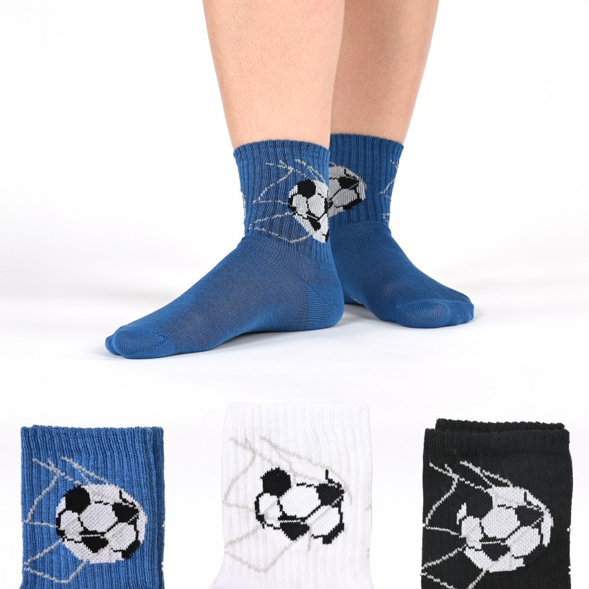 Il tessuto rigato sulla caviglia aggiunge un tocco sportivo, mentre il ricamo a forma di pallone è un dettaglio decorativo che conquisterà ogni piccolo appassionato di calcio. Il set comprende 3 paia in colori assortiti, perfetti da abbinare con ogni look.
