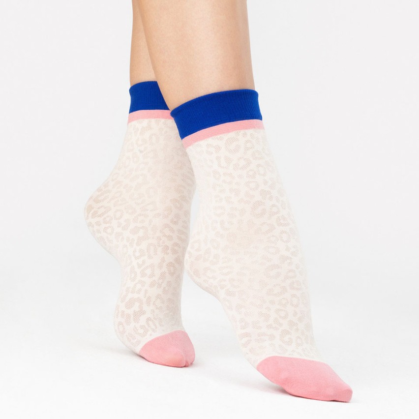 Le calze donna 30 den. con polsino azzurro Fiore Purr sono un accessorio elegante e ricercato, con un design che gioca sui toni delicati e femminili. Il loro effetto leopardato, sui toni del rosa e dell'ecrù, conferisce un aspetto raffinato ma allo stesso tempo moderno. La punta rosa aggiunge un tocco di colore, mentre il polsino azzurro e rosa crea un contrasto vivace che rende il modello più sbarazzino e giovanile.