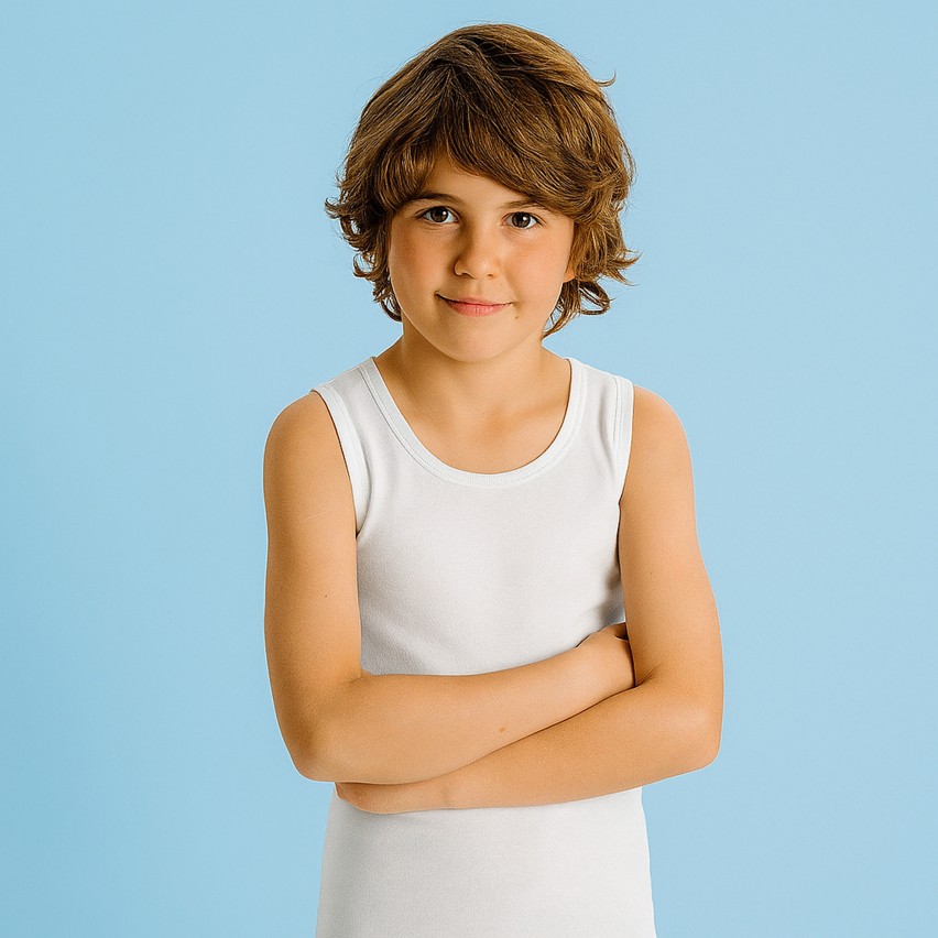 Canottiera bimbo spalla larga realizzata in caldo cotone garzato, che assicura un'ottima protezione dal freddo senza irritare la pelle dei vostri bambini!