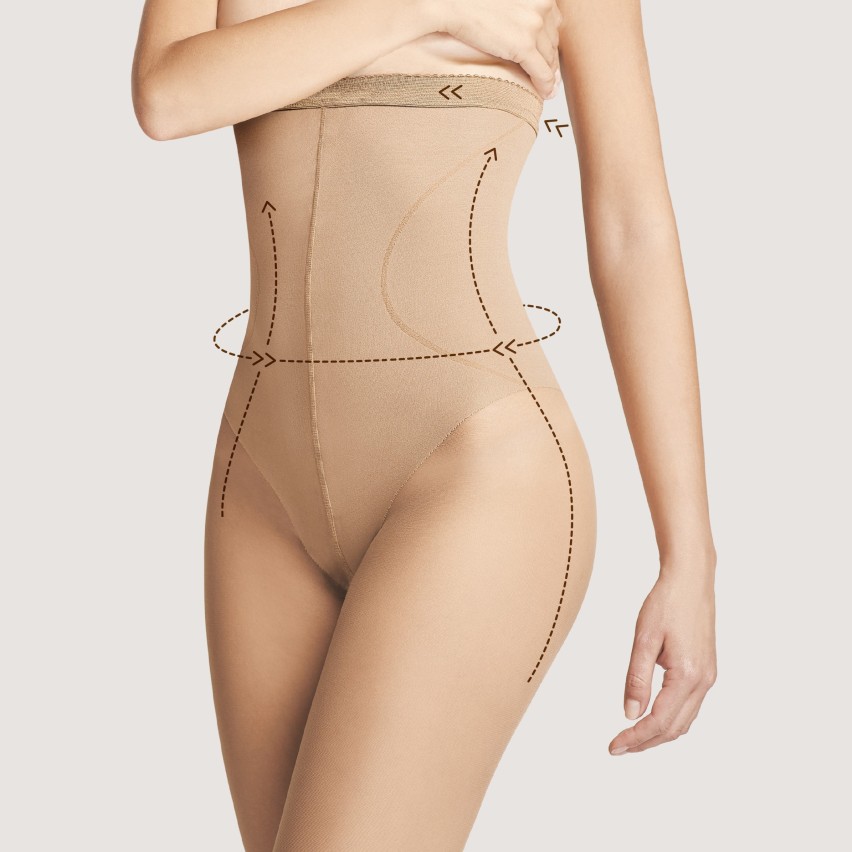 Collant bikini vita alta Fiore High Waist Bikini 20 den pelle, Modella, contiene il ventre, snellisce i fianchi, sostiene la schiena.