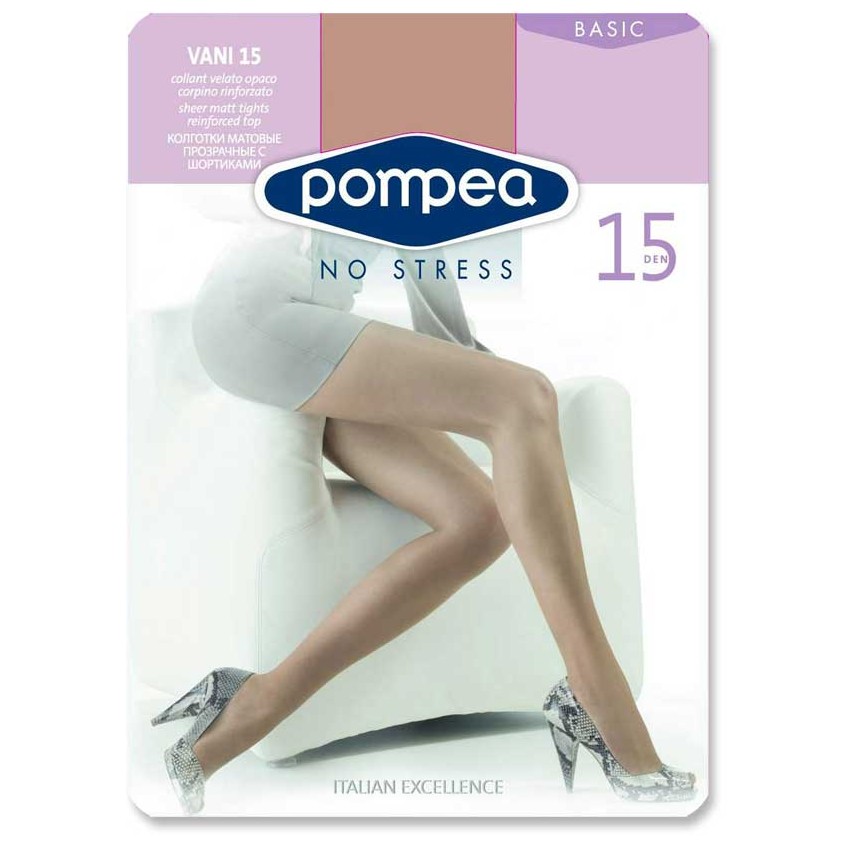 Confezione da 3 collant Pompea Vani 15 den, elasticizzato, velato, opaco, corpino e punte rinforzate.