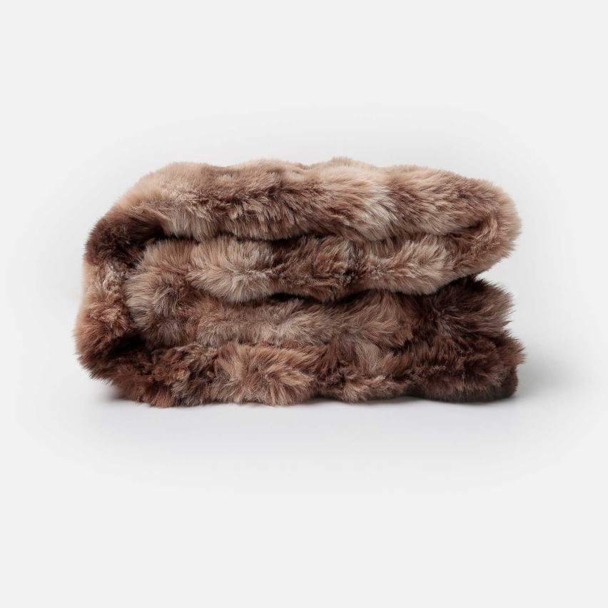 Progettato per evocare l'opulenza e la sensazione avvolgente delle pellicce più pregiate, questo plaid vanta un'eco-pelliccia folta e tridimensionale con un ricco mix di tonalità marroni e beige, che creano un dinamico effetto "faux-fur" realistico e sofisticato.