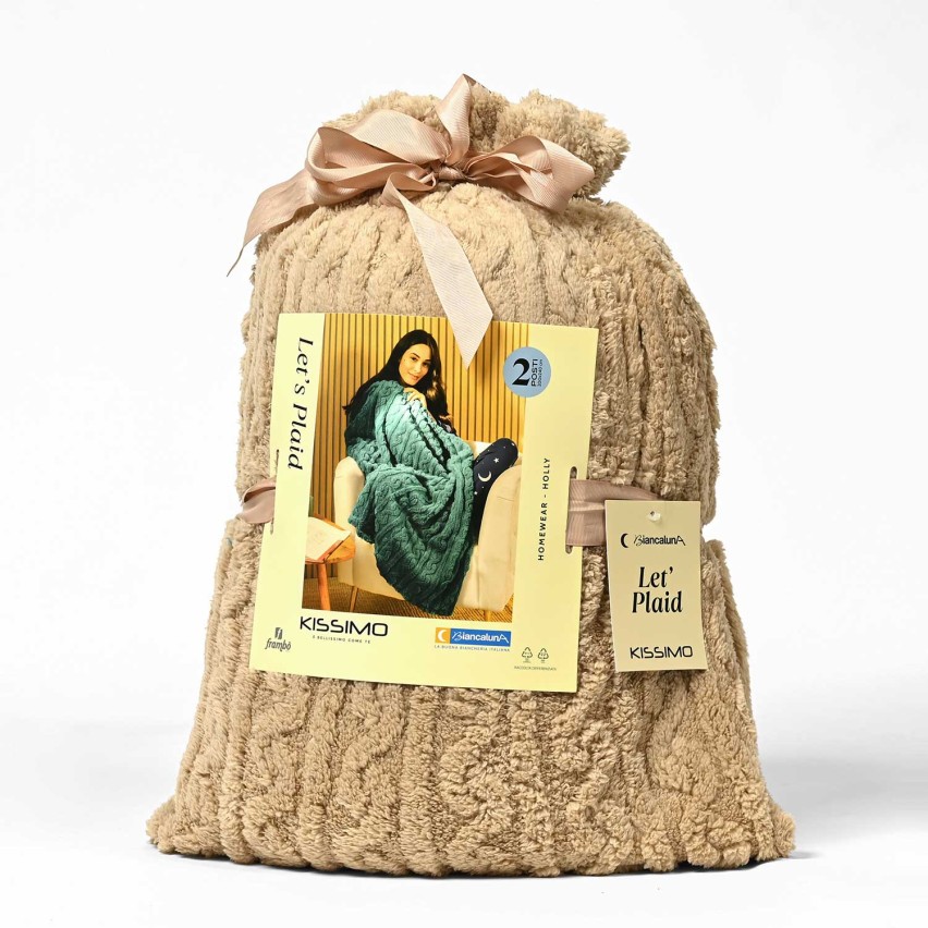 Regalatevi o regalate un'esperienza di puro comfort con il set "Let's Plaid" della linea Kissimo Biancaluna, l'unione ideale tra lusso e praticità.