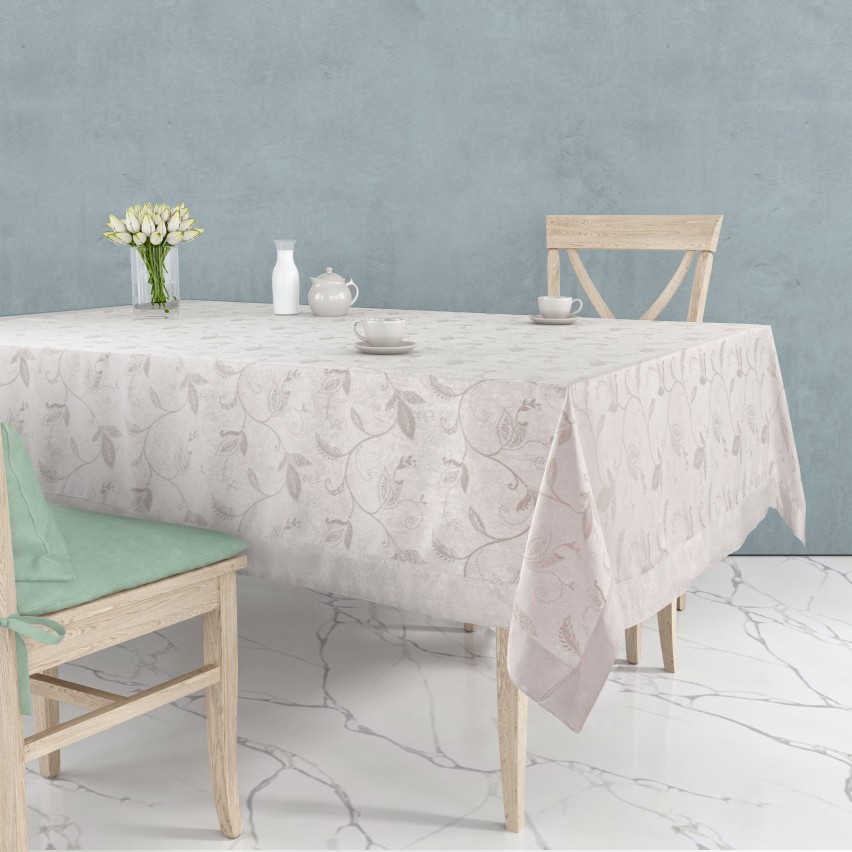 Copritavola tovaglia jacquard foglioline Preziosa Ascot E crema