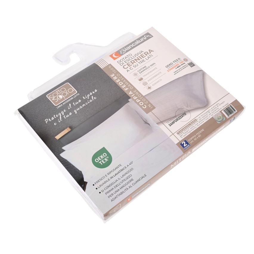 Biancaluna Mitra – Coppia di Federe in Cotone Damasco 100%