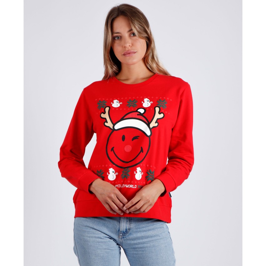 Felpa donna natalizia Smiley 56106 caldo cotone felpato rossa
