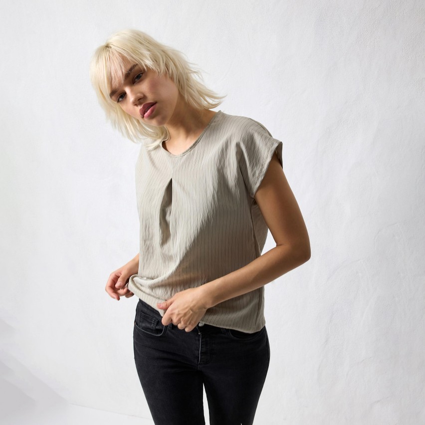 Rinnova il tuo guardaroba con la T-shirt gessata 4766 di JADEA, un capo versatile e raffinato che unisce eleganza e comfort.