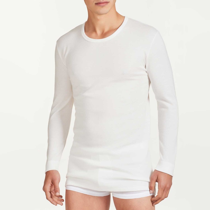 La maglietta girocollo a manica lunga Sintonia รจ il tuo alleato perfetto contro il freddo, offrendo un equilibrio impeccabile tra calore avvolgente e comfort sulla pelle.