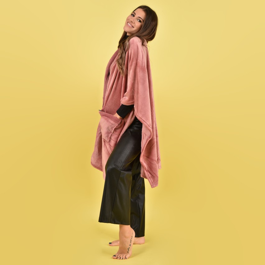 Ideale per uso indoor nelle serata invernali. Senza maniche, modello cappa.