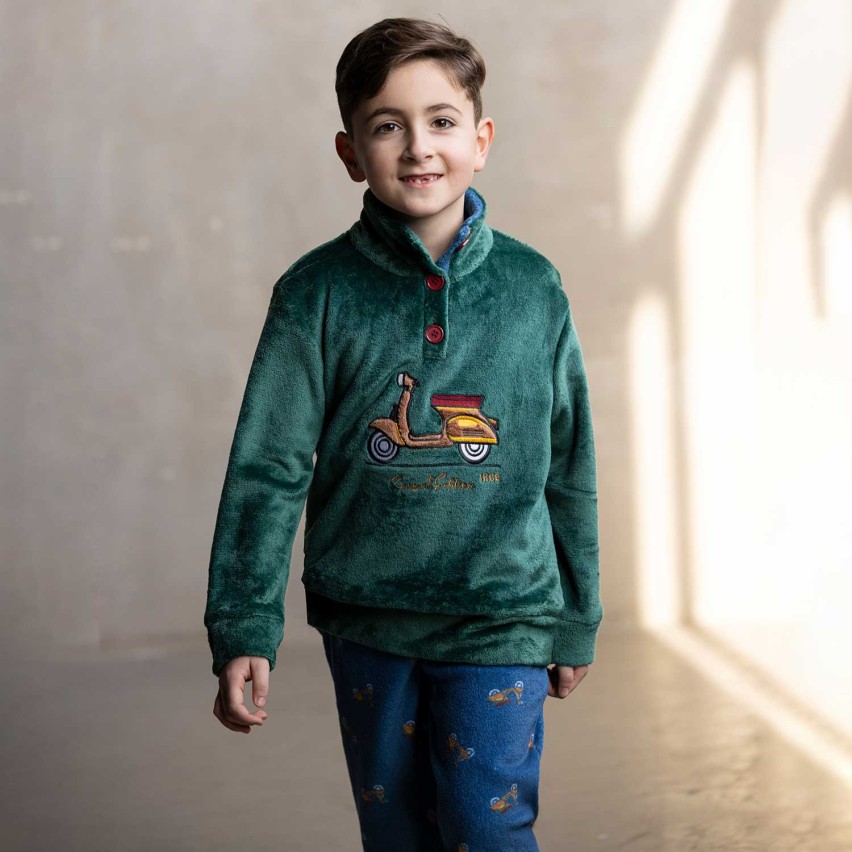 Questo pigiama in soffice pile è l'abbraccio di calore che ogni bambino merita per affrontare l'inverno.