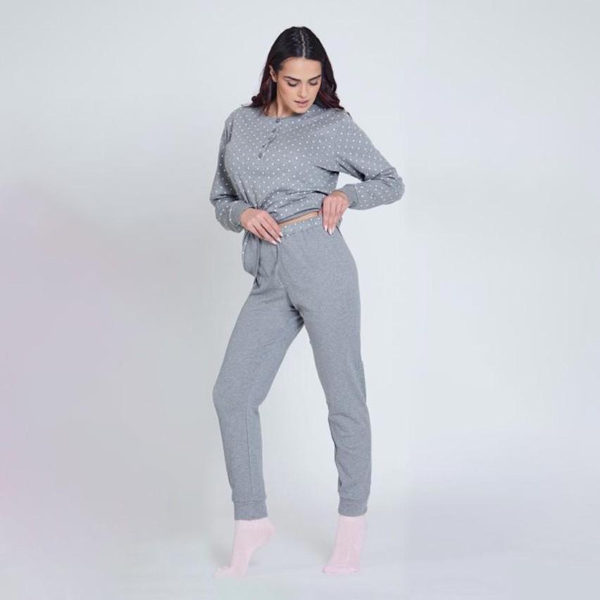 Avvolgente, comodo e curato nei dettagli: questo pigiama da donna firmato Nazarello Gabrielli รจ realizzato in caldo cotone, ideale per affrontare le stagioni fredde con morbidezza e comfort. Composto da una maglia a maniche lunghe con scollo rotondo e una pratica apertura con bottoncini sul davanti, impreziosita da un delicato motivo a pois. I polsini al fondo della manica assicurano una vestibilitร perfetta e trattengono il calore, rendendolo particolarmente confortevole per le serate piรน fresche.