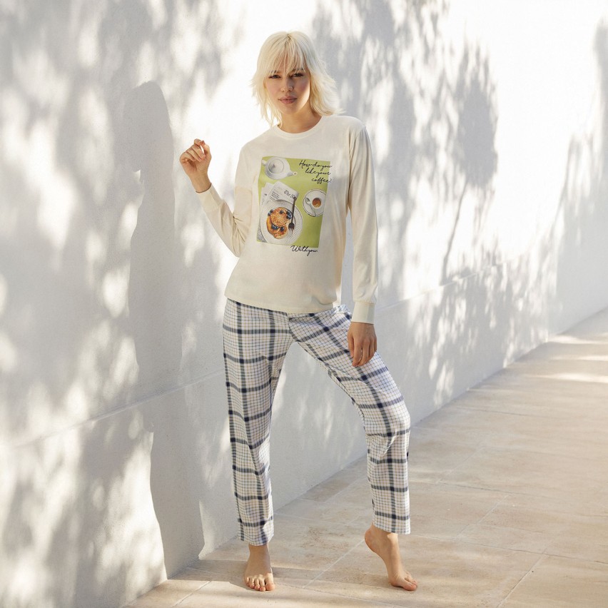 Inizia la giornata con il piede giusto grazie a questo pigiama da donna in cotone leggero, un inno alla dolcezza e ai piccoli piaceri quotidiani.