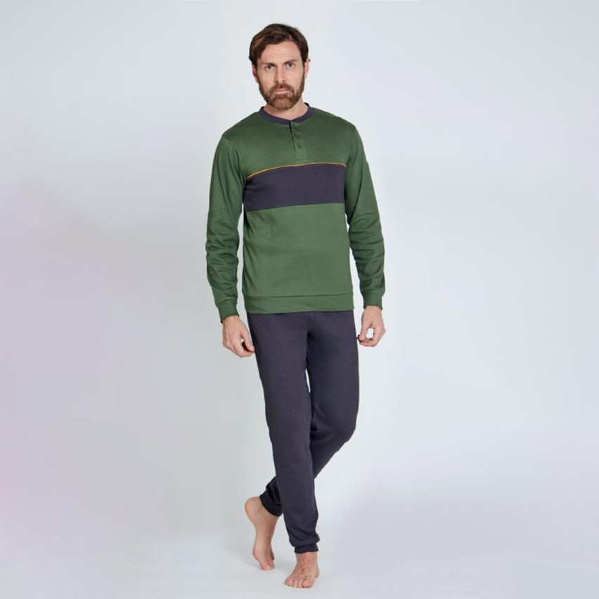 Pigiama lungo da uomo realizzato in caldo cotone interlock, ideale per le serate più fredde.