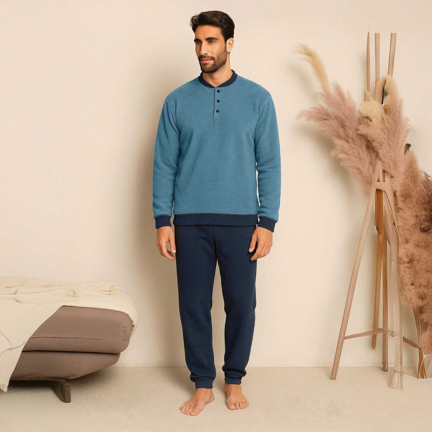 Pigiama uomo maglia aperta in pile Biancaluna 25U03002