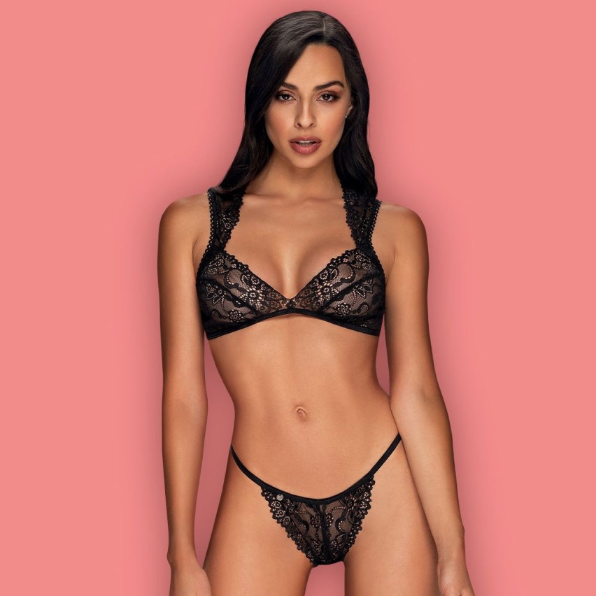 Disponibile nel colore: nero. Il set include: bralette e panties. Composizione: 90%poliammide, 10% elastan Disponibile nelle taglie: S/M, L/XL. Dotato della propria confezione originale "Obsessive".