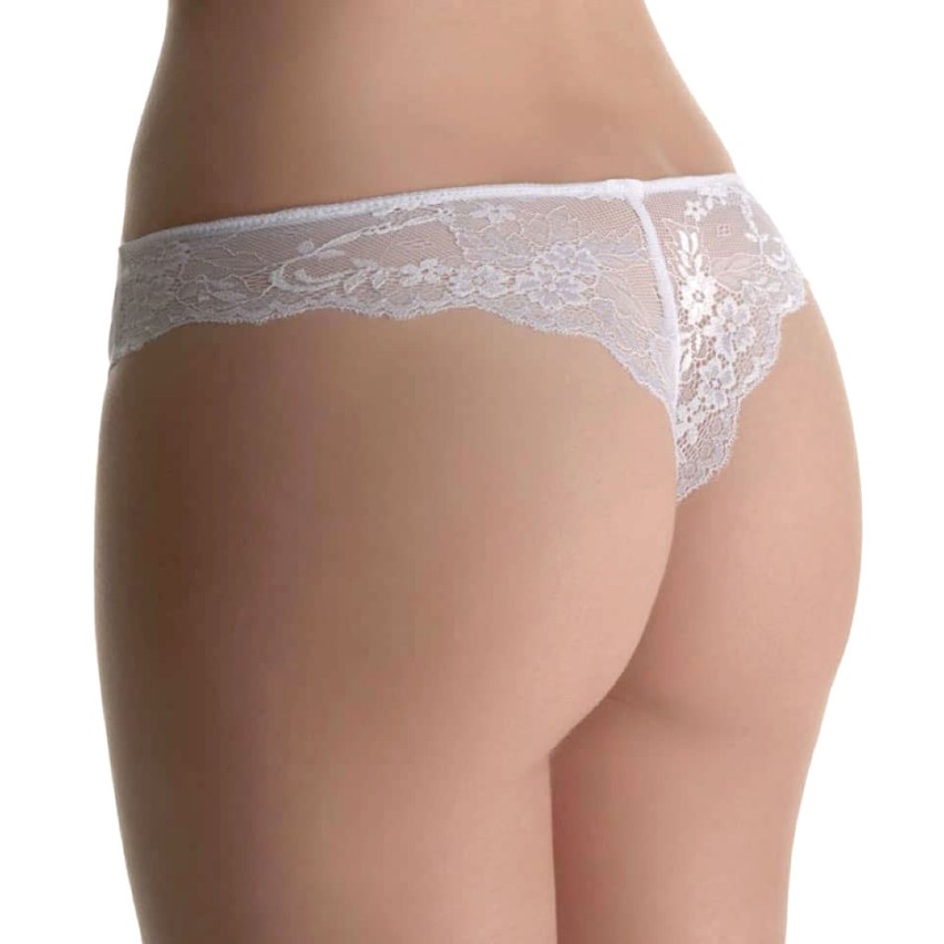 Bellissima brasiliana realizzata in morbida microfibra nella parte anteriore e pizzo lavorato a motivo floreale nella parte posteriore.