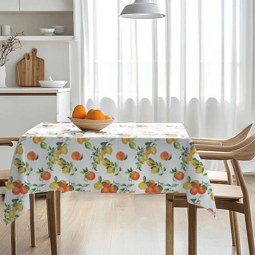 Perfetta per chi ama apparecchiare con gusto senza rinunciare alla comodità, questa tovaglia conquista al primo sguardo grazie alla sua fantasia vivace di limoni, agrumi e fiori di gelsomino, arricchita da dolci foglioline verdi su uno sfondo bianco luminoso.