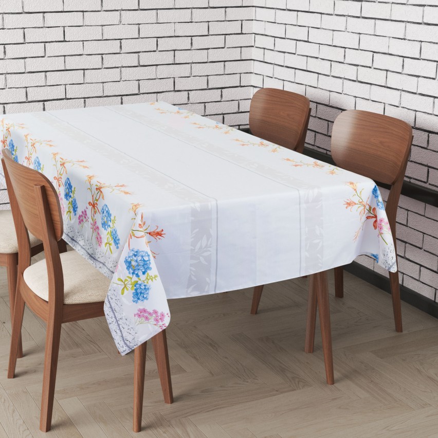 Bellissima tovaglia verso i lati decorata con fiori vari e colorati. Vi sembrerà quasi di pranzare su un prato fiorito!